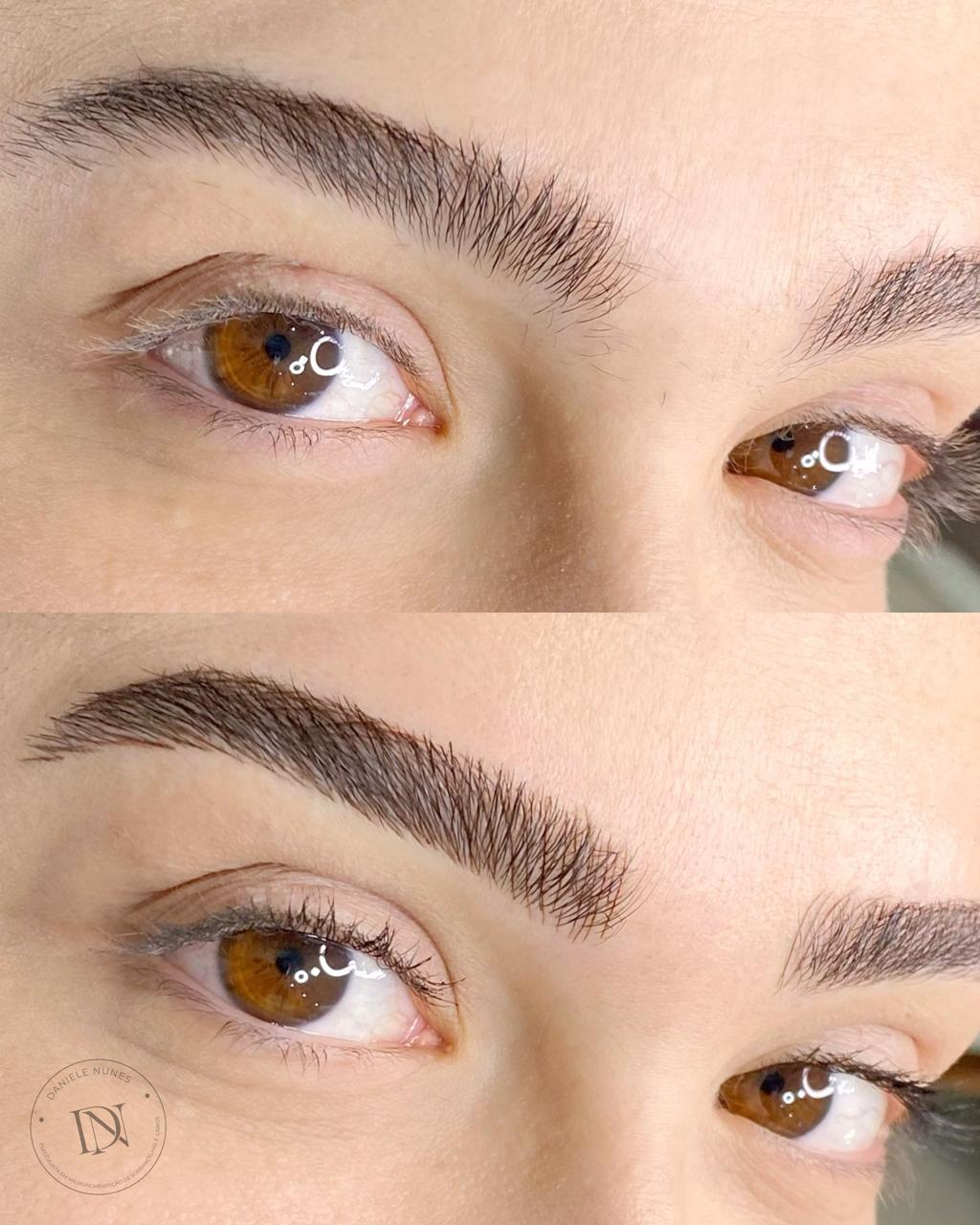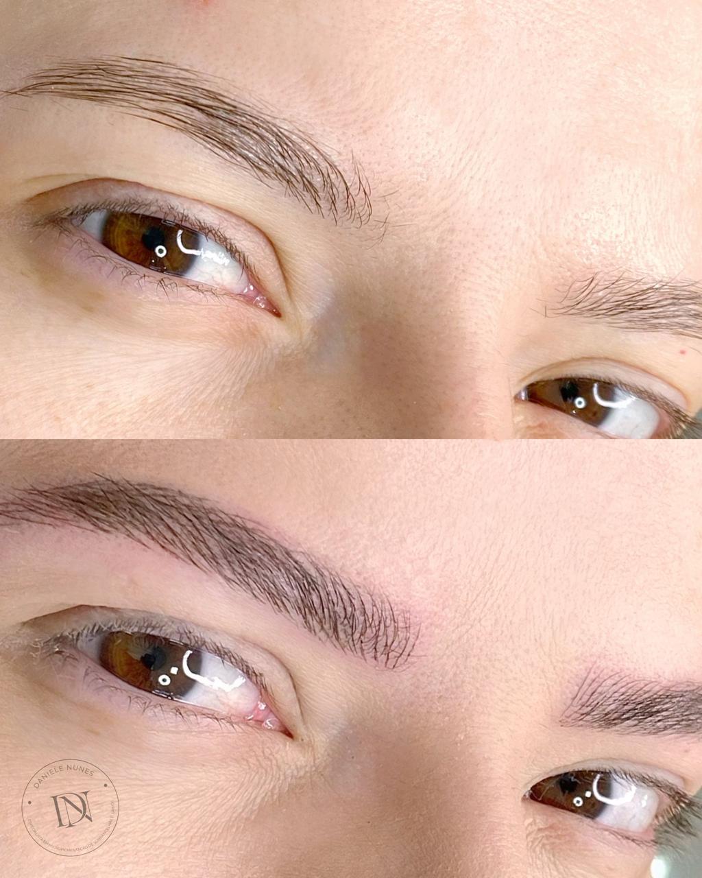 Essa preocupação é comum, mas pode ficar tranquila. Nosso objetivo é garantir um resultado natural e harmonioso, sempre considerando o formato do seu rosto e respeitando a cor original dos fios das suas sobrancelhas.